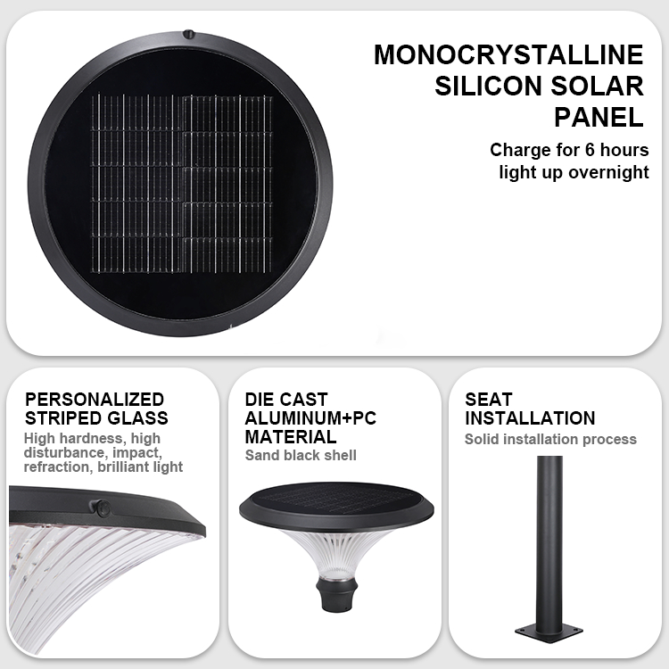 | Control mode: Remote control/solar light control | Material: Die-cast aluminum +PC |