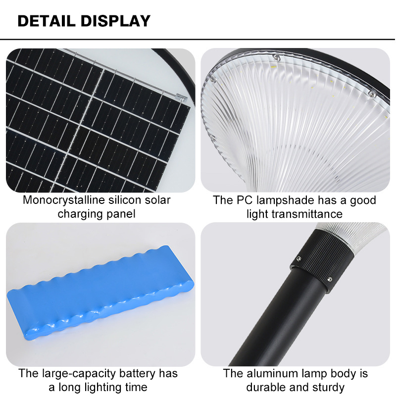 | Control mode: Remote control/solar light control | Material: Die-cast aluminum +PC |