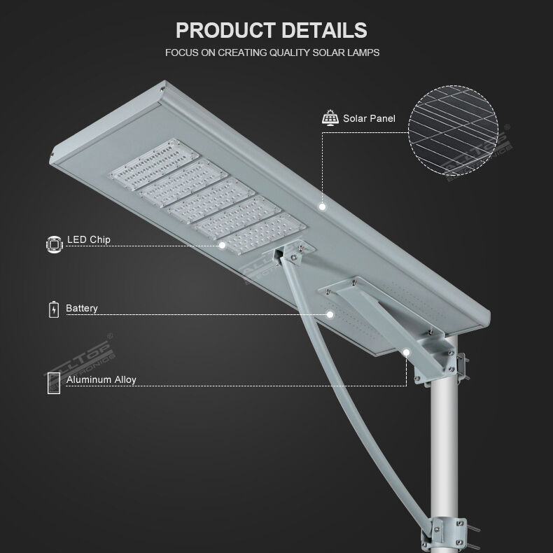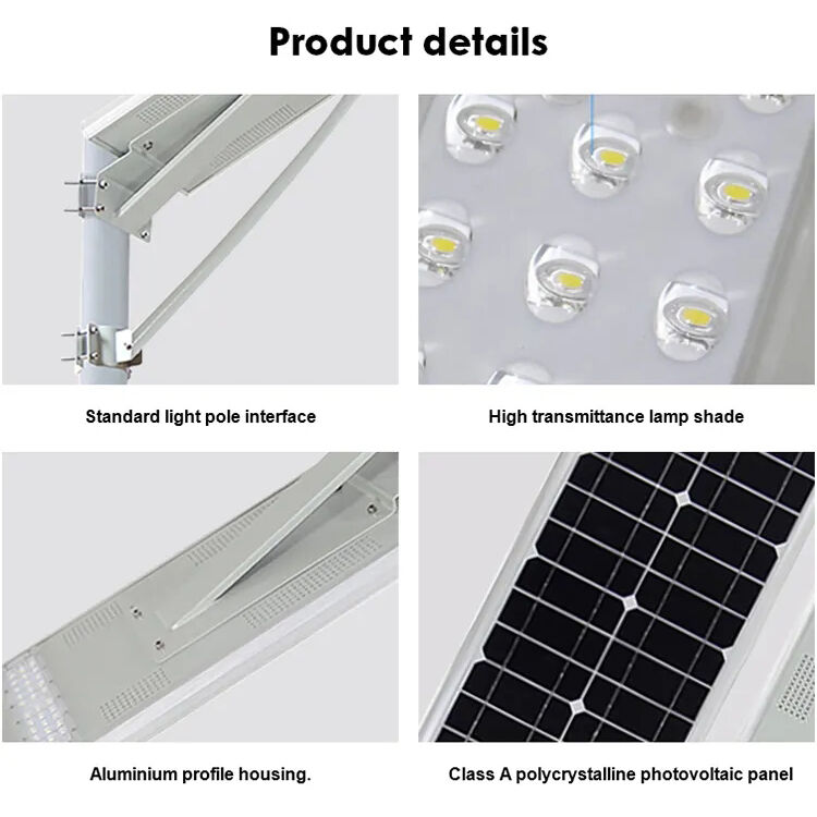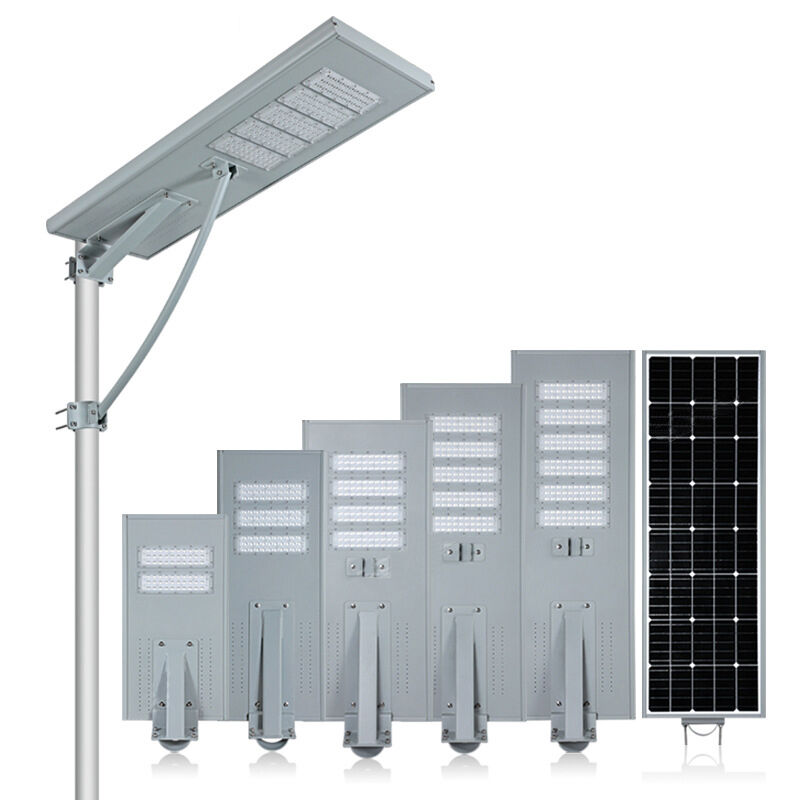 This all in one solar street light features a high efficiency monocrystalline panel and LiFePO4 battery for stable outdoor lighting.
